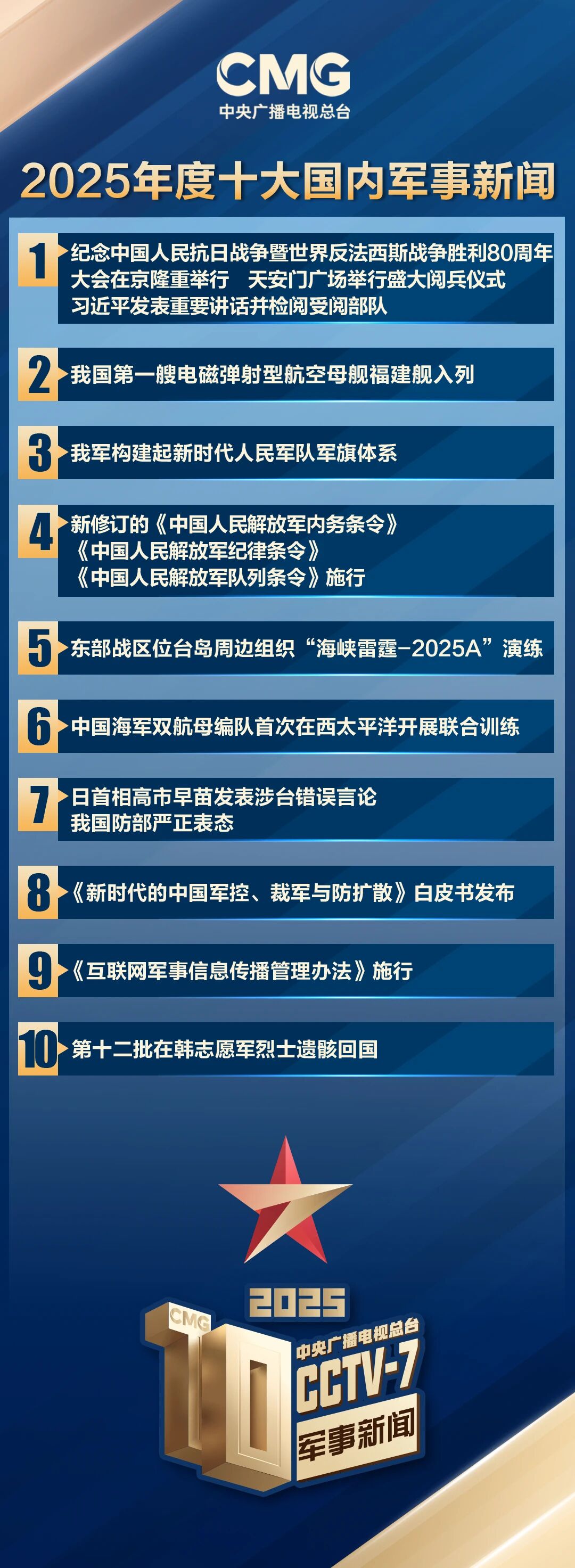 12月26日,中央广播电视总台发布2025年度十大国内军事新闻,其中“第十二批在韩志愿军烈士遗骸回国”入选。
