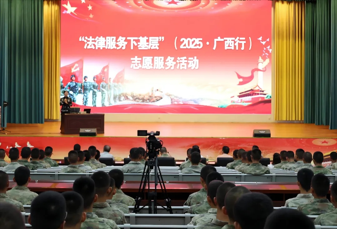 退役军人“法律服务下基层”志愿活动在广西开展,图为广西“桂在有你”法律服务志愿队副队长在部队进行授课。广西壮族自治区退役军人事务厅供图。