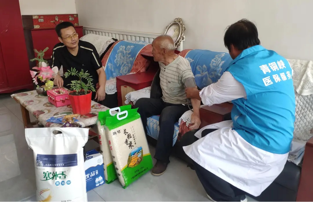 青铜峡市退役军人事务局走访慰问困难退役军人,并邀请家庭医生上门为其量血压、测血糖,及时掌握退役军人身体状况。