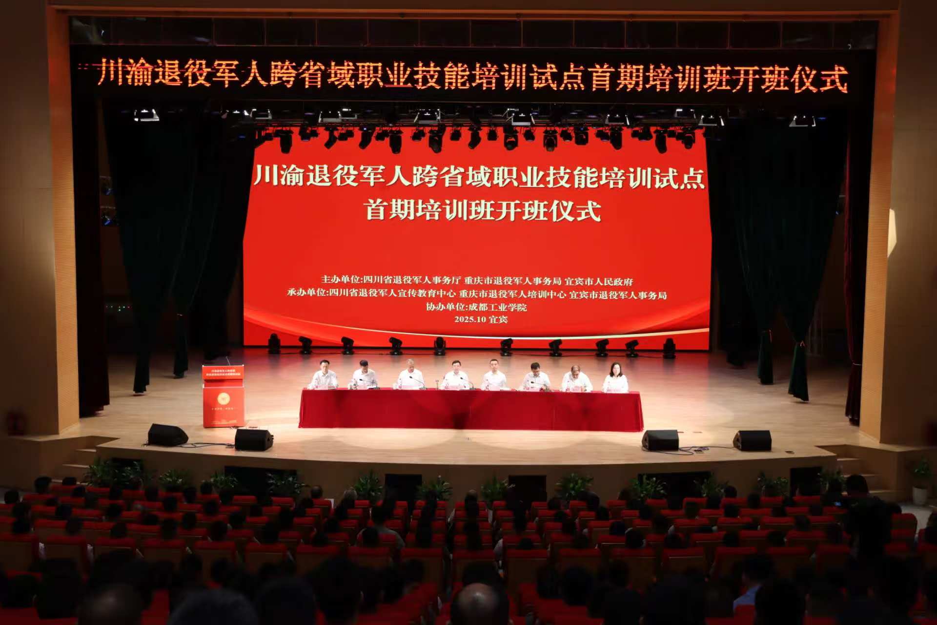 10月14日上午,川渝退役军人跨省域职业技能培训试点首期培训班开班仪式在宜宾举行,635名退役军人报名参训。四川省退役军人事务厅党组成员、副厅长余远友,重庆市退役军人事务局党组成员、副局长陈军,宜宾市人民政府副市长、党组成员、市公安局党委书记黄金盛,宜宾市政府办公室二级巡视员李林,成都工业学院宜宾校区副校长张世凭等出席开班仪式。